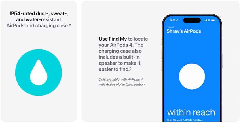 The AirPods 4 are designed to keep up with active lifestyles. With sweat and water resistance, they are suitable for workouts, outdoor activities, and everyday use in varying conditions. Whether you’re running, walking, or caught in light rain, these earbuds are built to perform reliably.
