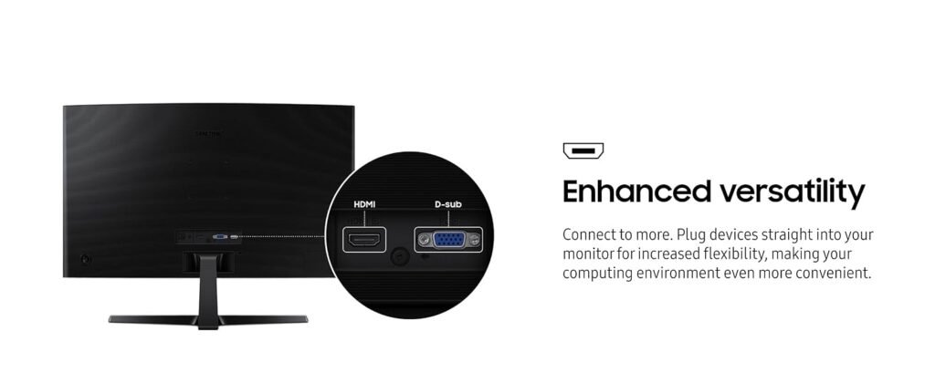 Samsung ensures broad compatibility by equipping the Essential S3 with standard connectivity options. These inputs allow the monitor to work seamlessly with desktops, laptops, and other devices commonly used in U.S. households and offices.