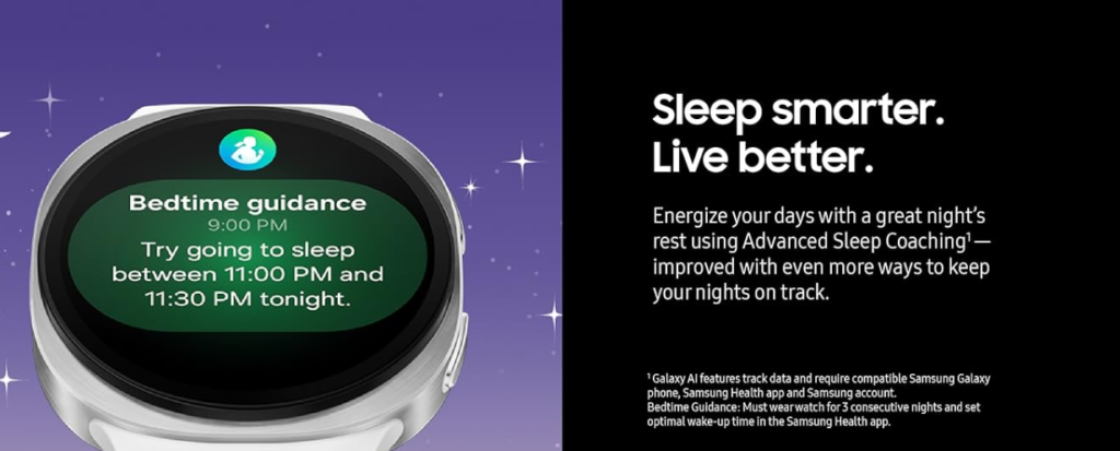 Quality sleep is essential for overall health, and the Galaxy Watch 8 takes sleep tracking seriously. The watch monitors sleep duration, consistency, and patterns throughout the night, offering a detailed overview of nightly rest.