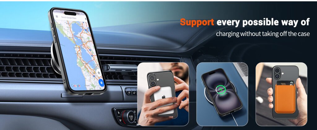 MagSafe compatibility is one of the most important features for modern iPhone accessories. The SUPFINE case includes built-in magnets designed to align perfectly with MagSafe chargers and accessories.