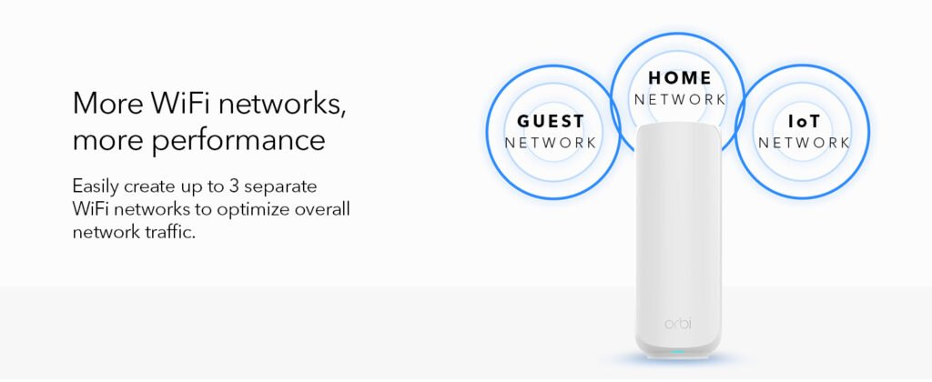 - Smart home / IoT usage — For homes with many connected devices (smart thermostats, lights, cameras, speakers), having multiple network segments (main, IoT, guest) helps manage and secure these devices efficiently.