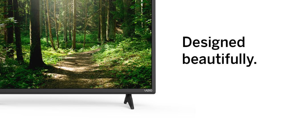 The VIZIO D-Series 40-inch Smart TV boasts a slim, contemporary design with thin bezels, maximizing screen space for a more immersive viewing experience. The TV sits on two sturdy plastic legs, providing a stable base, though it’s also VESA-compatible (200x100mm) for wall mounting if preferred.